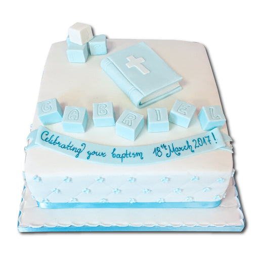 Description Ingredients & Info Delivery Christening Bible Cake Size: 9" approx. in diameter. Available for next day delivery if ordered bef...