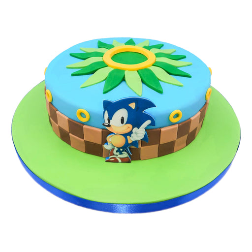 A delightful Sonic the Hedgehog design for all those fans of the blue flurry creature ! An 8" round two layer high cake providing 20-25 portions. W...