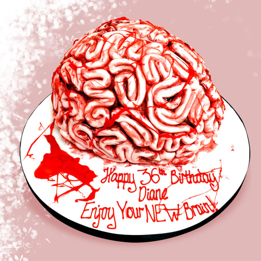 Description Ingredients & Info Delivery Brain Cake Size: 9" approx. in diameter. It comes on a 12" square cake board. Available for next da...